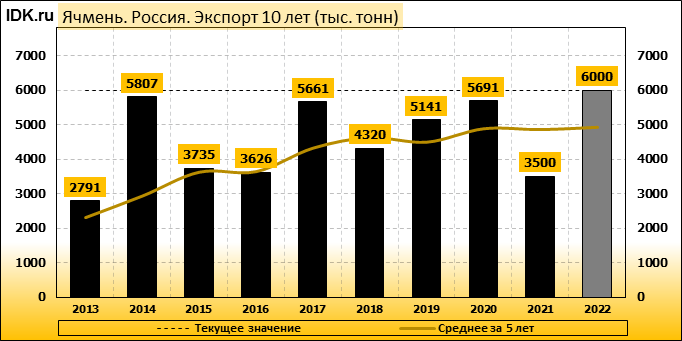 Экспорт: оценивается в 6000 тысяч тонн. За месяц показатель не претерпел изменений.