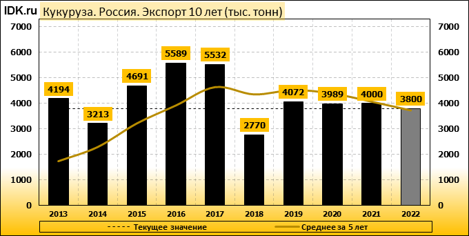 Экспорт: оценивается в 3800 тысяч тонн. За месяц показатель упал на -11.63 процента.