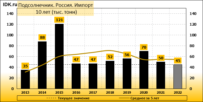 Импорт: составит 45 тысяч тонн. Значение по прошествии месяца не изменилось.