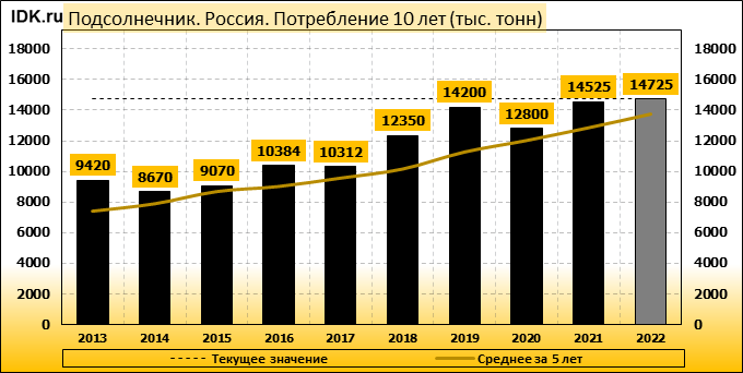 Потребление: показатель пересмотрен в сторону повышения до 14725 тысяч тонн. Значение выросло на 5.75 процента.