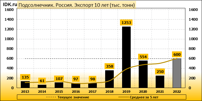 Экспорт: оценивается в 600 тысяч тонн. За месяц показатель не претерпел изменений.