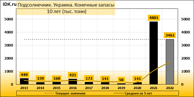 Конечные запасы: составят 3461 тысячу тонн. Оценка с последнего отчета снизилась на -14.77 процента.