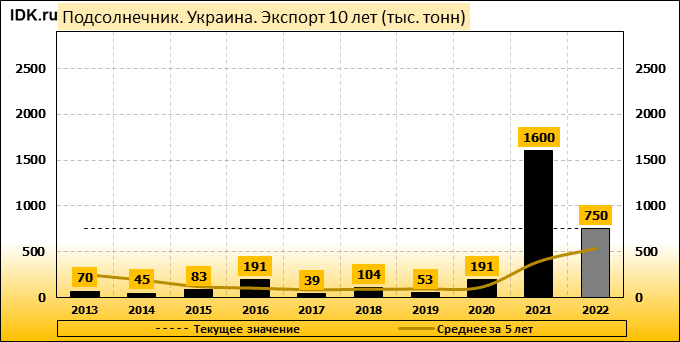 Экспорт: оценивается в 750 тысяч тонн. За месяц показатель не претерпел изменений.