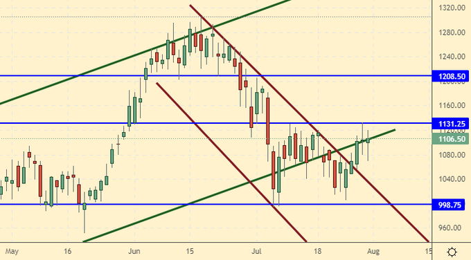 Поддержка – 998.75. Сопротивление – 1131.25.