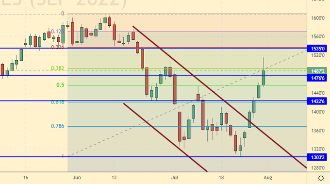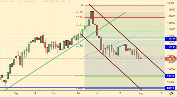 Сценарий роста: рассматриваем сентябрьский фьючерс, дата экспирации 29 августа. Будем держать лонги. Ситуация с поставками газа в Европу становится острее день ото дня, что держит в напряжении и глобальный рынок.
