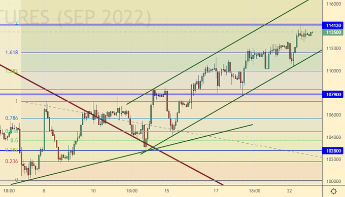 Продажа: после падения ниже 110000. Стоп: 112000. Цель: 95000.