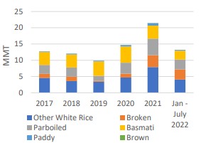Индия поставляет более половины мирового экспорта дробленого риса. В результате этого запрета прогноз общего экспорта риса был снижен до 20,3 млн тонн на 2022 год и 20,0 млн тонн на 2023 год.