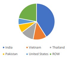 Индийский экспорт риса-сырца, коричневого риса, обычного белого риса без басмати и непропаренного обычного белого риса (HS 10063090) теперь облагается налогом по ставке 20 процентов. Самой крупной из этих категорий является не басмати, не пропаренный белый рис, который она поставляет в основном в Африку и соседние страны. В частности, за последние пару лет индийские цены были со значительной скидкой по сравнению с другими крупными экспортерами, что делает его привлекательным вариантом для стран-импортеров с низким уровнем дохода.