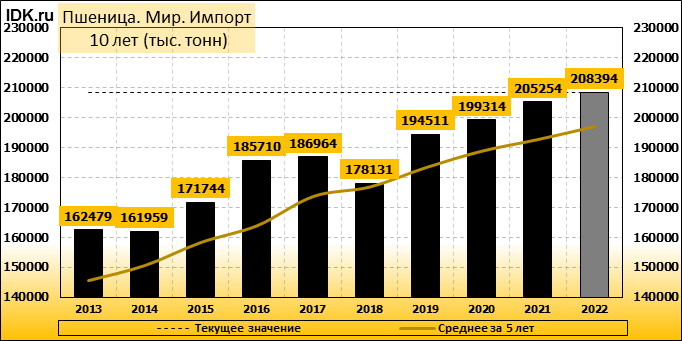Импорт: составит 208394 тысяч тонн. Значение по прошествии месяца поднялось на 0.12 процента.