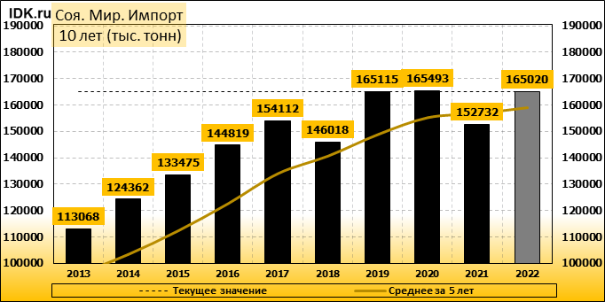 Импорт: составит 165020 тысяч тонн. Значение по прошествии месяца упало на -0.72 процента.