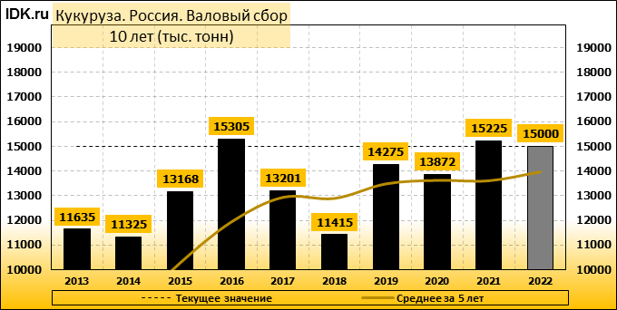 Валовый сбор: оценка не изменилась и составляет 15000 тысяч тонн.