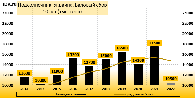Валовый сбор: оценка пересмотрена в сторону повышения до 10500 тысяч тонн. Показатель вырос на 10.53 процента.