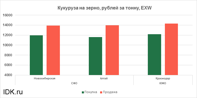 За прошедшую неделю с 19.09.2022 по 23.09.2022 средняя цена кукурузы на зерно, согласно выставленным заявкам трейдеров, выросла по всем округам на 335 рублей. Средняя цена составляет 13080 рублей за тонну.