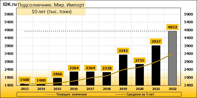 Импорт: составит 4832 тысячи тонн. Значение по прошествии месяца не изменилось.