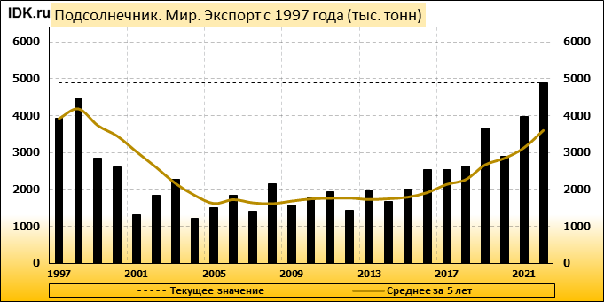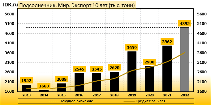 Экспорт: оценивается в 4895 тысяч тонн. За месяц показатель вырос на 0.18 процента.