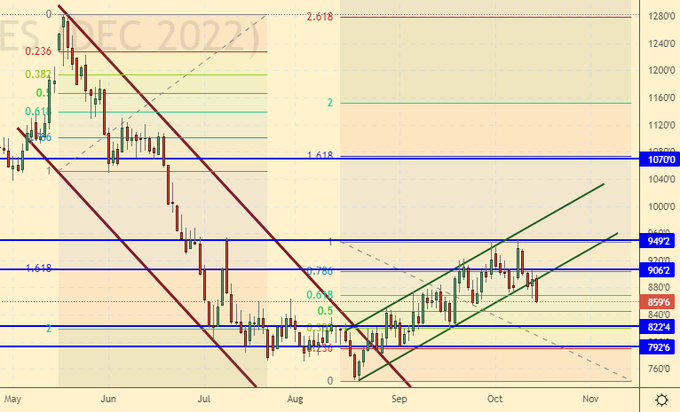 Мир разделился на две половины. Западу и иным потребителям нужны дешевые ресурсы. России и иным экспортерам нужны высокие цены. На рынке нефти идет жесткая подковерная борьба. До выборов в США остается меньше месяца. Байдену и компании надо рисовать красивую картинку. Нельзя исключать, что её помогают создавать и американские хедж-фонды, вот только у арабов денег столько, что куры не клюют. Битва между ОПЕК+ и администрацией Байдена продолжается. В данный момент рынок по Brent не виден ниже 90.00 долларов за баррель.