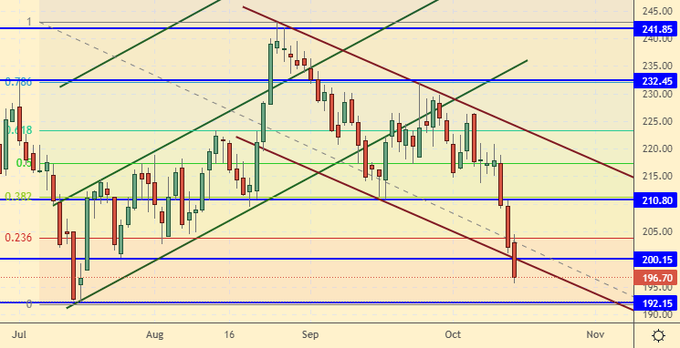 Сценарий падения: продолжаем держать шорты. При подъеме к 210.0 стоит нарастить шорт.