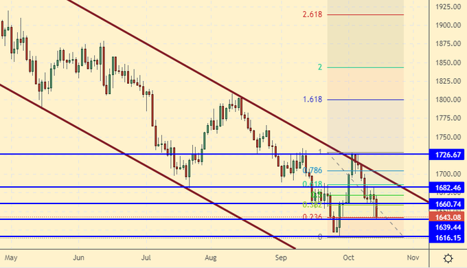Продажа: нет. Кто в позиции от 1700, перенесите стоп на 1703. Цель: 1480 долларов за тройскую унцию.