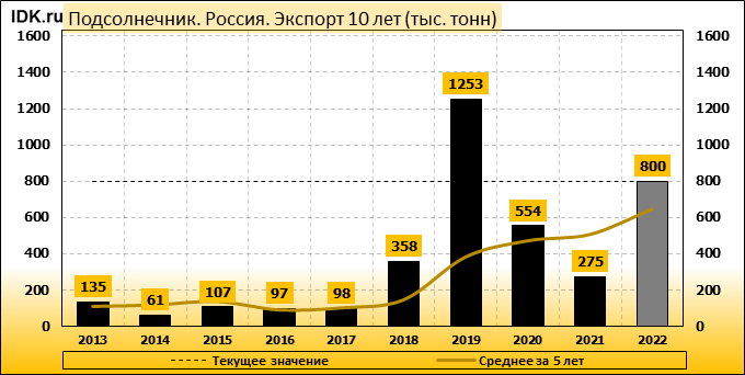 Экспорт: оценивается в 800 тысяч тонн. За месяц показатель не претерпел изменений.