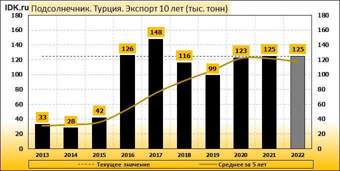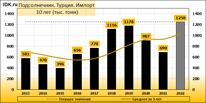 Ожидается, что Турция соберет рекордный урожай семян подсолнечника в 2022-23 маркетинговом году, согласно отчету Министерства сельского хозяйства США. В отчете отмечается, что производство подсолнечного шрота и масла также прогнозируется на рекордно высоком уровне. По данным Министерства сельского хозяйства США, при благоприятных погодных условиях и расширении посевных площадей производство семян подсолнечника в Турции, по прогнозам, достигнет 1,9 млн тонн. Министерство сельского хозяйства США прогнозирует импорт семян подсолнечника в Турцию в 2022-2023 годах на уровне 1,25 млн тонн при условии, что украинский зерновой коридор останется открытым и полностью действующим.
