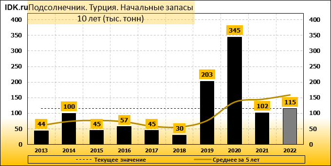 Конечные запасы: составят 118 тысяч тонн. Оценка с последнего отчета не изменилась.