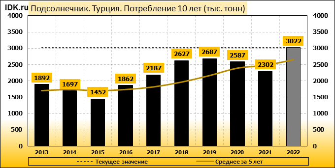 Потребление: показатель не изменился и составляет 3022 тысячи тонн.