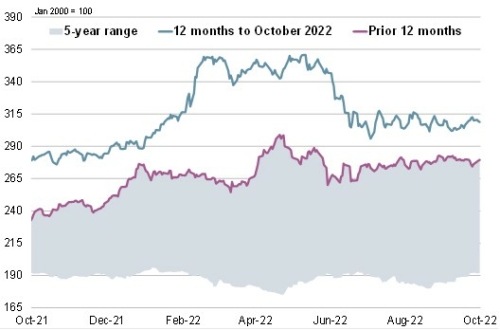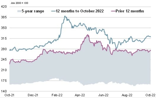 Рисунок 2. Индекс зерновых и масличных культур IGC (GOI)