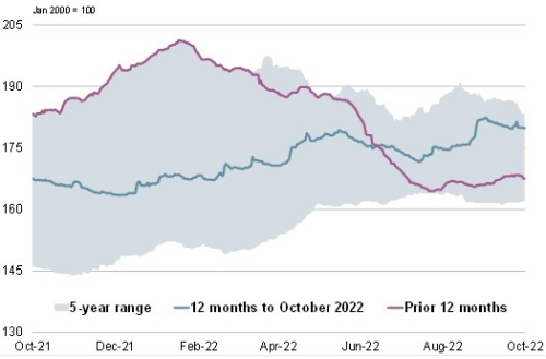 С компенсирующими перемещениями по основным компонентам GOI IGC в целом мало изменился по сравнению с концом сентября.