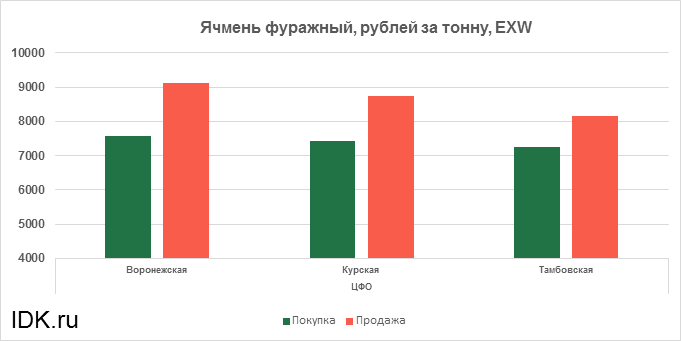 За прошедшую неделю с 17.10.2022 по 21.10.2022 средняя цена на фуражный ячмень, согласно выставленным заявкам трейдеров, выросла по всем округам на 493 рубля. Средняя цена составляет 8195 рублей за тонну.