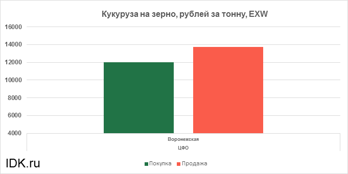 За прошедшую неделю с 17.10.2022 по 21.10.2022 средняя цена кукурузы на зерно, согласно выставленным заявкам трейдеров, упала по всем округам на 70 рублей. Средняя цена составляет 12880 рублей за тонну.