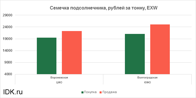 В ЮФО цена упала на 4762 рубля, до 23088 рублей за тонну.