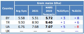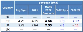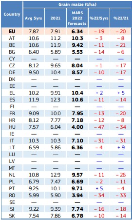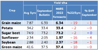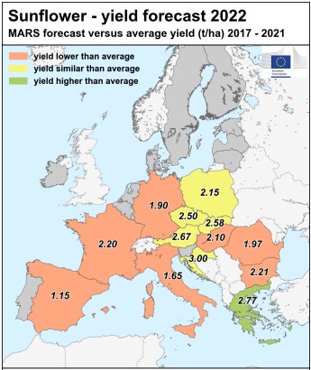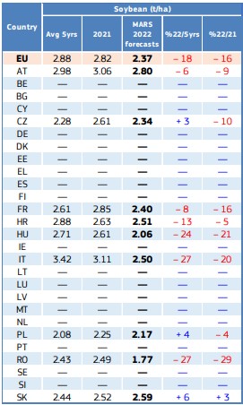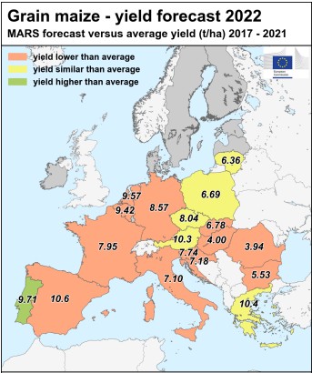 Как следствие, прогнозы урожайности зерновых кукурузы, подсолнечника и сои были дополнительно снижены. В случае кукурузы на зерно это происходит в дополнение к сокращению посевных площадей, поскольку часть урожая, запланированного для кукурузы на зерно, была собрана как зеленая кукуруза (фуражная или силосная).