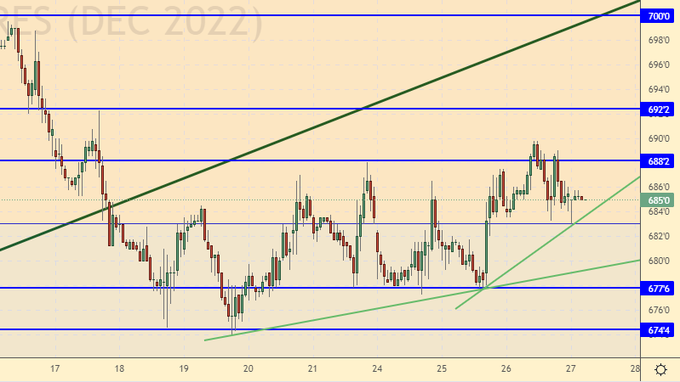 Быки пытаются выстроить предпосылки для нового рывка вверх к 750.0. В их успех сложно поверить пока мы находимся под 695.0, но все-таки он возможен. Придется учитывать оба варианта развития событий.