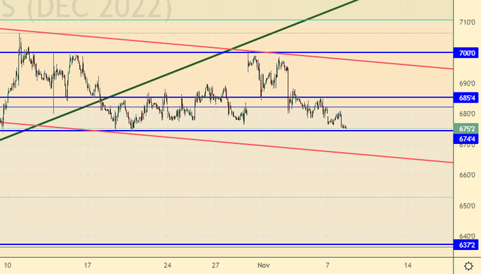 Напомним, что быков-спекулянтов очень много на рынке кукурузы. Они явно продолжат защищать уровень 670.0. Но, если котировки упадут ниже, то нас может ждать быстрый ход на 640.0.