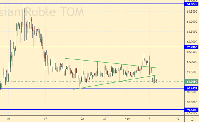 Видим небольшое укрепление рубля. Доллар несколько ослаб на мировой арене, поэтому у рубля появились шансы. К сожалению, пока события на Украине отвлекают на себя большие ресурсы, что может начать сказываться на рубле в ближайшие несколько недель. А пока мы в состоянии прийти к 60.00, возможно 59.50. Ниже рынок без дополнительных стимулов не виден.