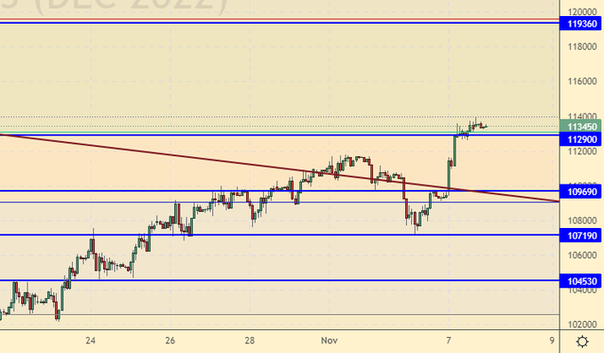 Мы прошли 113000, что предполагает продолжение роста в район 120000. Если сегодня рынок закроется выше 113500, то можно будет купить с коротким стоп-ордером, в надежде взять рост от 113000 к 120000.