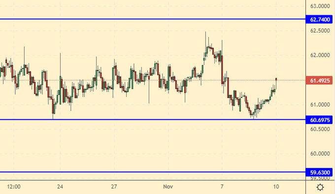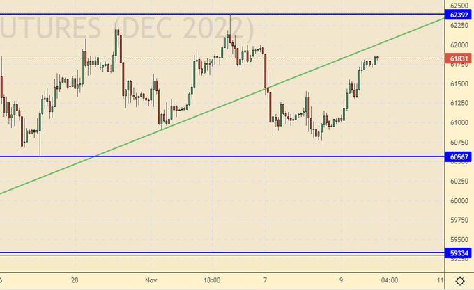 И на фьючерсе, и на спотовом рынке видим синхронный подъем. В случае хода выше 62.00 нам снова можно будет рассуждать о покупках. Пока не вышли данные по инфляции в США, пара будет на месте, далее, если позиции доллара ослабнут, то мы отправимся к 60.00.