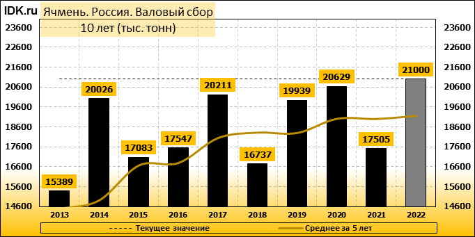 Валовый сбор: оценка не изменилась и составляет 21000 тысяч тонн.