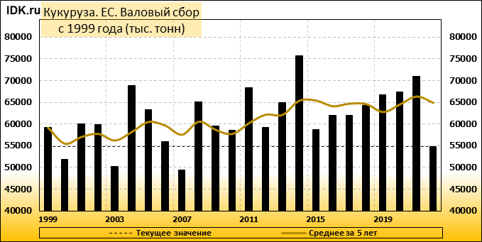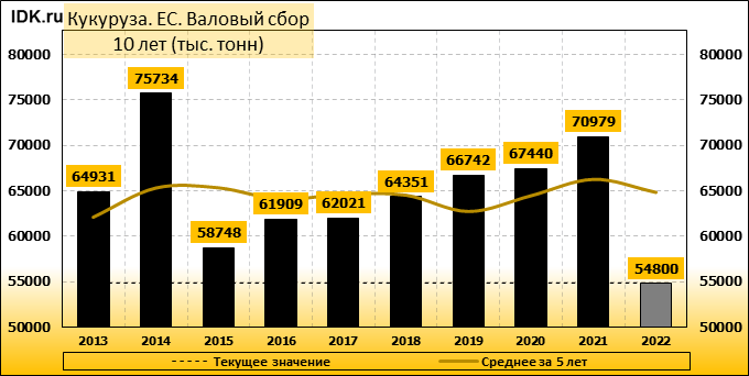 В ежемесячном отчете по зерновым французская фирма понизила прогноз урожая кукурузы в ЕС в 2022 году до 50,4 млн тонн с 52,9 млн, прогнозируемых в сентябре.