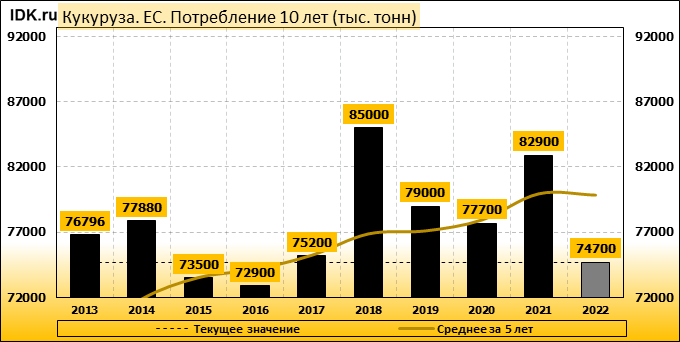 За прошедший месяц министерство сельского хозяйства США (USDA) на 09.11.2022 пересмотрело Баланс кукурузы для ЕС в сезоне 22/23 следующим образом: