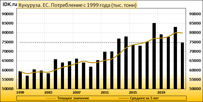 Потребление: показатель пересмотрен в сторону понижения до 74700 тысяч тонн. Значение упало на -1.84 процента.