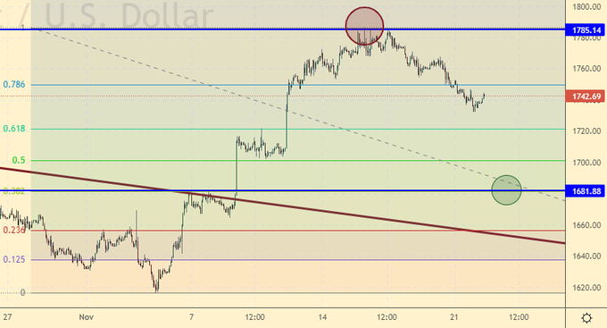 Продажа: нет. Кто в позиции от 1785, держите стоп на 1772. Цель: 1685.