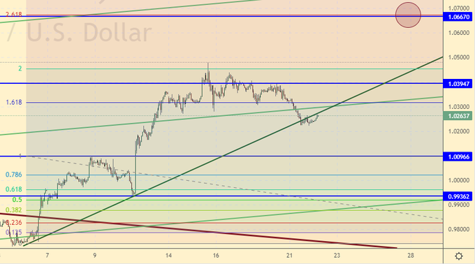 Продажа: при подходе к 1.0650. Стоп: 1.0760. Цель: 1.0000. Кто в позиции от 1.0340, держите стоп на 1.0390. Цель: 0.8600.
