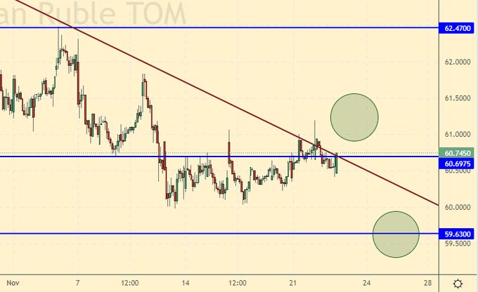 Покупка: при подходе к 59.60. Стоп: 59.20. Цель: 70.00. Кто в позиции от 60.60, держите стоп на 60.40. Цель: 70.00.