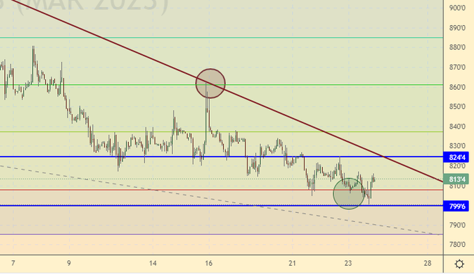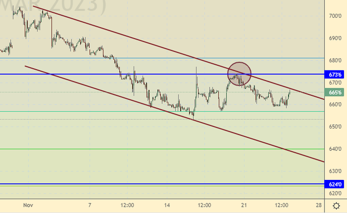 Быки попытаются протолкнуть рынок выше 680.0. Если это получится, то мы можем замахнуться на 800.0. Сейчас пройти вверх будет непросто так как пока действует зерновая сделка у трейдеров нет серьезного повода для раскручивания рынка вверх.