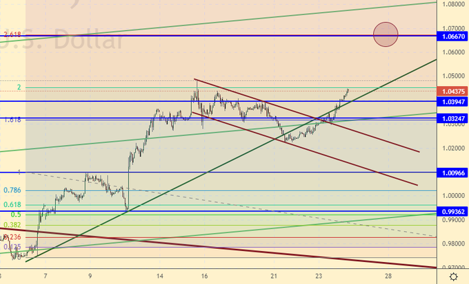 Продажа: при подходе к 1.0650. Стоп: 1.0760. Цель: 1.0000.