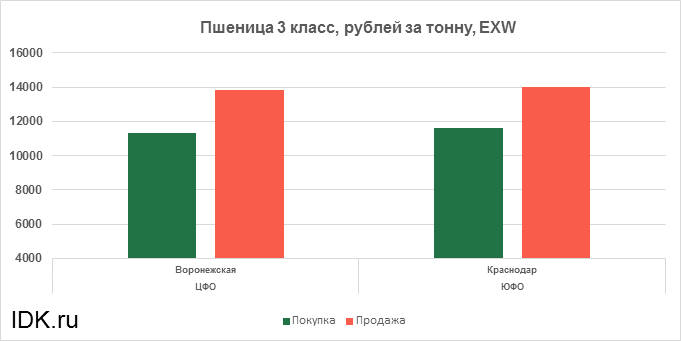 За прошедшую неделю с 05.12.2022 по 09.12.2022 средняя цена на пшеницу 3-го класса, согласно выставленным заявкам трейдеров, упала по всем округам на 23 рубля. Средняя цена составляет 12698 рублей за тонну.