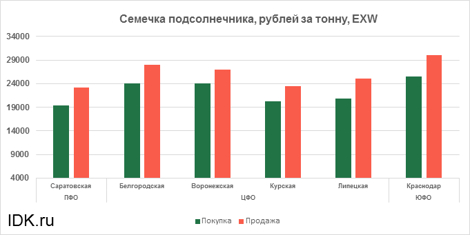 В ЮФО цена упала на 23 рубля, до 12807 рублей за тонну.
