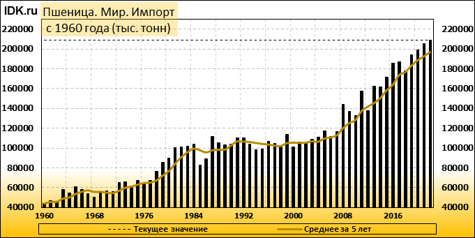 Импорт: составит 208759 тысяч тонн. Значение по прошествии месяца поднялось на 1.07 процента.