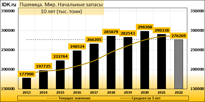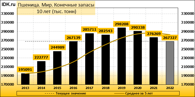 Конечные запасы: составят 267327 тысяч тонн. Оценка с последнего отчета снизилась на -0.18 процента.